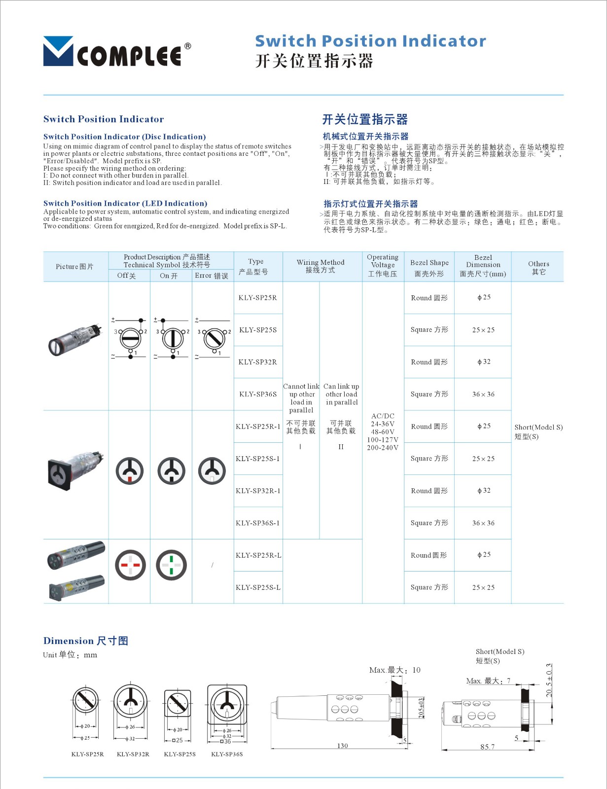 開關(guān)位置指示器KLY-SP25R/SP25S/SP32R/SP36S/SP25R-1/SP25S-1/SP32R-1/SP36S-1/SP25R-L/SP25S-L